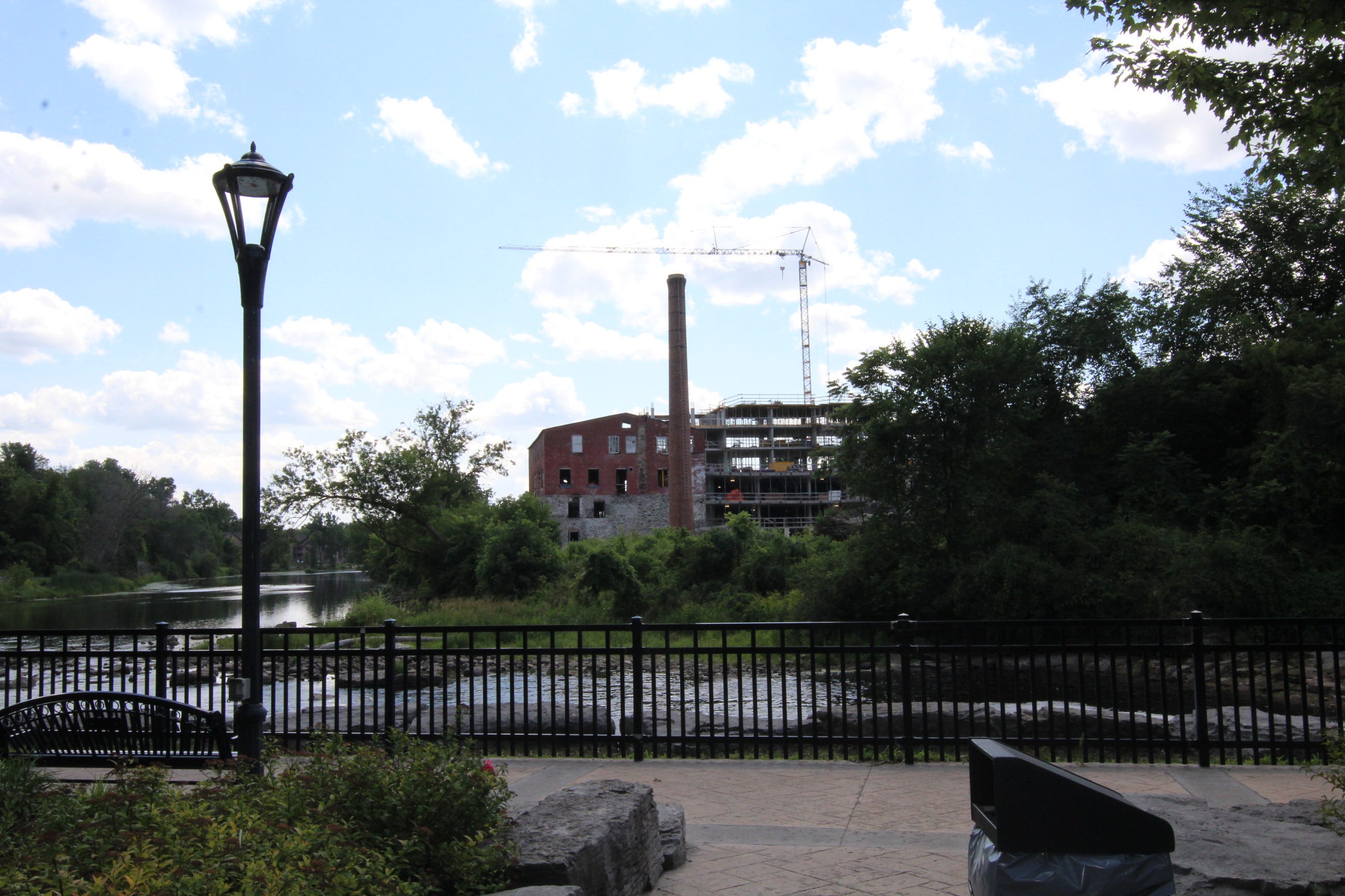 The Gibbard District is an ambitious project, which is transforming an old mill into a two-building condo development. The façade of the mill, built in 1835, is being maintained and flanked by five story buildings totaling 143 units. It may seem like an unlikely fit for a town like Napanee, but there’s some logic to it.